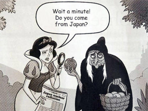 Но многорукие сумоисты и спортсмены - это еще не все. Два года назад японцы затаили серьезную обиду на Белоснежку. Тогда в журнале International Herald Tribune появился рисунок, на котором сказочная героиня с подозрением смотрит на яблоко, которое ей предлагает колдунья и спрашивает: "Подождите-ка! А Вы случайно не из Японии?" При этом Белоснежка держит в руках газету, на которой можно рассмотреть заголовок "Радиация в Японии?".
