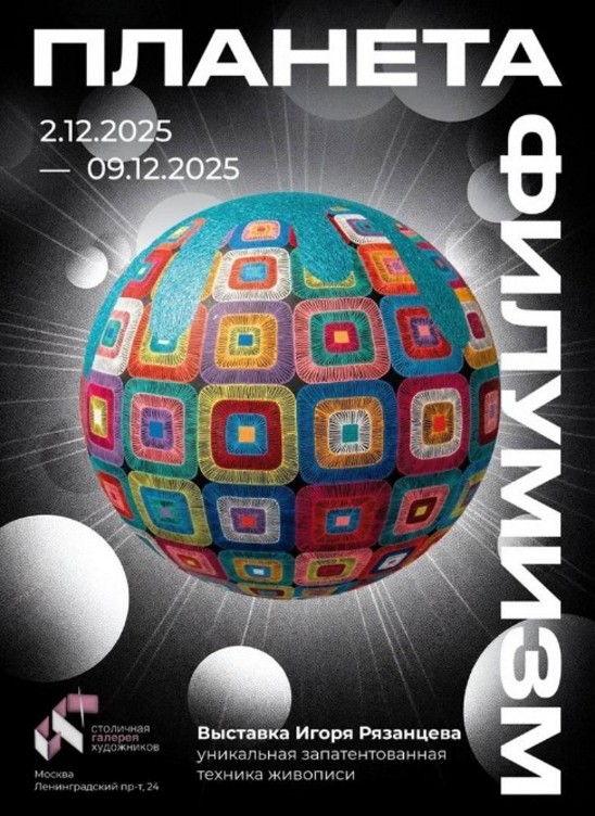 В Столичной галерее художников будет проходить выставка произведений художника Игоря Рязанцева (Rene Reza), выполненных в самобытном авторском стиле. Игорь Рязанцев – единственный в мире художник, который придумал и запатентовал в 2011 году новый стиль живописи XXI века "Филумизм". Филумизм происходит от латинского слова filum – "нить". Суть техники заключается в том, чтобы писать не кистью, а шприцем. То есть выдавливать краску, в данном случае акрил, через иглу шприца и укладывать ее на поверхность холста в виде тонких цветных нитей, создавая своеобразный нетканый акриловый гобелен.